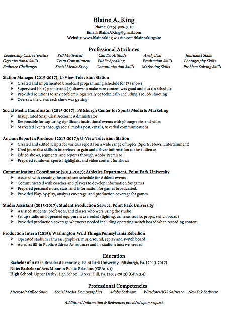 I am a recent graduate from Point Park University with a Bachelor's Degree in Broadcast Reporting with a minor in Public Relations. On my website you will see all of the experience I have within the communications field (reporting, producing, social media). If you have any questions please reach out to me. Thank you!